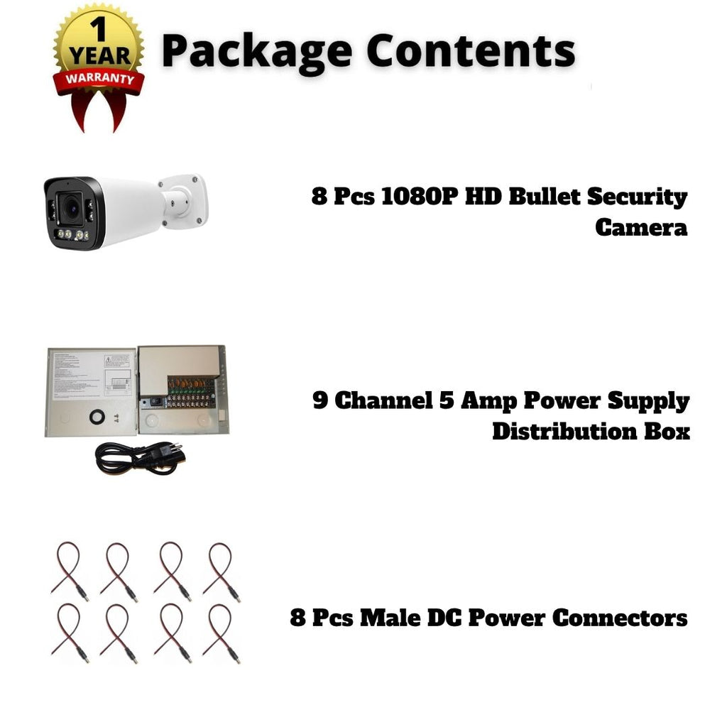 9 Channel power supply distribution box provides 12V DC Power for these 8 Cameras.