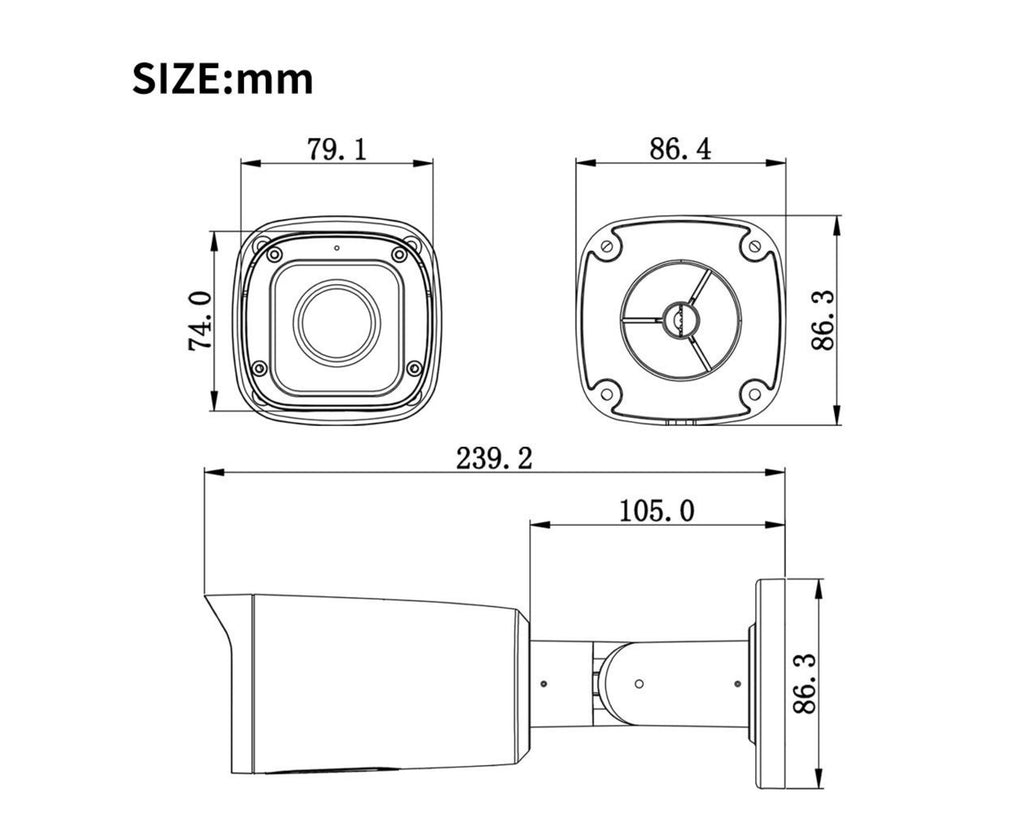 2.8-12mm Lens, Zoom and Focus can be adjusted manually. Night Vision up to 198ft.